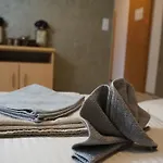 The rooms include a balcony and a dining area, as well as a flat-screen TV with satellite channels for your convenience. An electric kettle, a fridge, and kitchenware are also included.